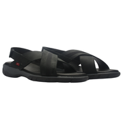 Sandalia de Hombre color Negro Marca Ferracini 1715 Tracker, el material de su capellada es de Cuero, al igual que, su interior su ajuste es abierto, su color tiene un acabado texturizado, ademas su planta es plana